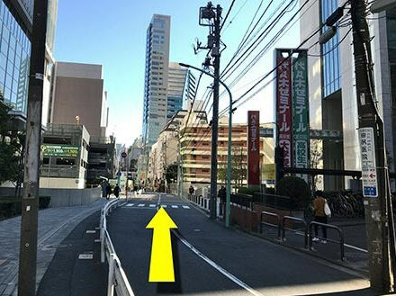「代々木ゼミナール本部校」さん(代ゼミタワー)の前を通り過ぎて、まっすぐ進みます。