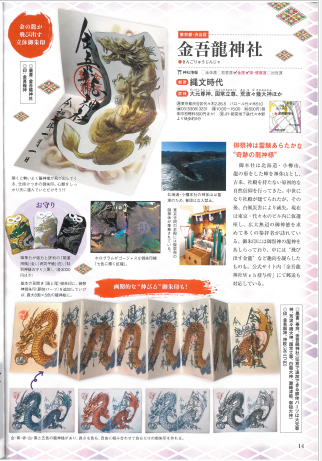 ぴあMOOK『集めて開運!御朱印図鑑(全国版)』に金吾龍神社の御朱印が掲載されました。金吾龍神社が全国から厳選された寺社の1つに選ばれ「パワーみなぎる!/珠玉の御朱印コレクション」特集の中で、「飛び出す龍神さま御朱印」と「伸びる五色龍御朱印」をはじめ、御朱印帳やお守りが紹介されました。